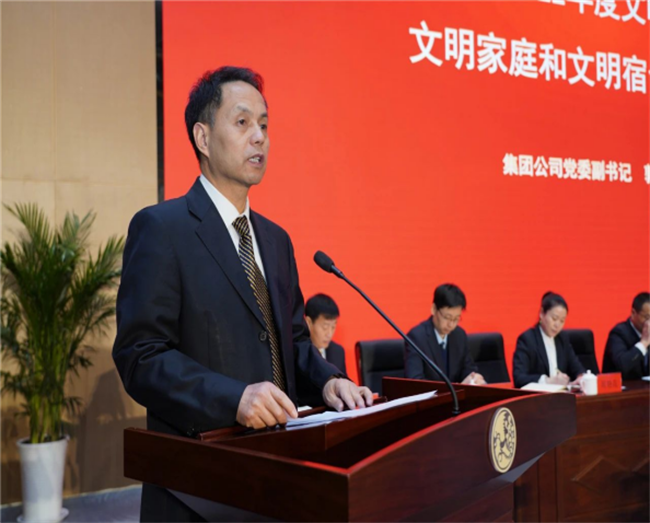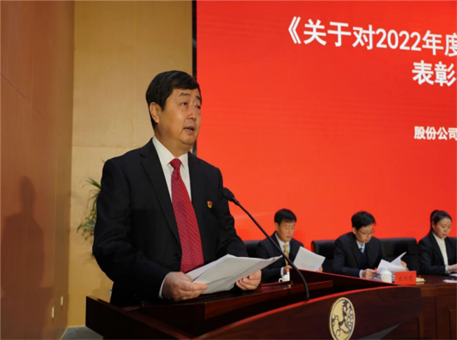 西鳳集團公司黨委副書記郭拴新宣讀《關(guān)于命名表彰公司2022年度文明單位、文明班組、文明家庭和文明宿舍的決定》