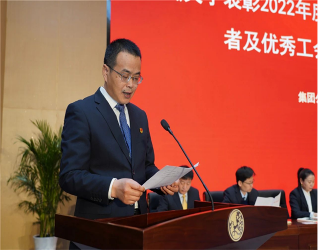 西鳳集團公司副總裁楊會軍宣讀《關(guān)于表彰2022年度先進分會和優(yōu)秀工會積極分子的決定》