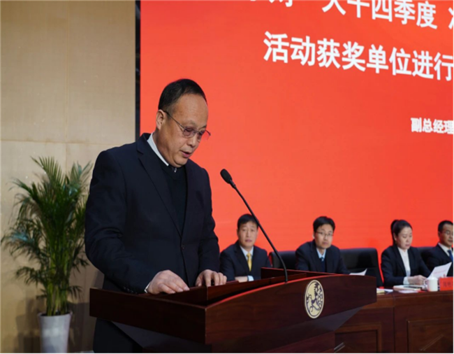 西鳳股份公司副總經(jīng)理師紅勤宣讀《關(guān)于對“大干四季度 沖刺全年目標任務(wù)”競賽活動獲獎單位進行表彰獎勵的決定》