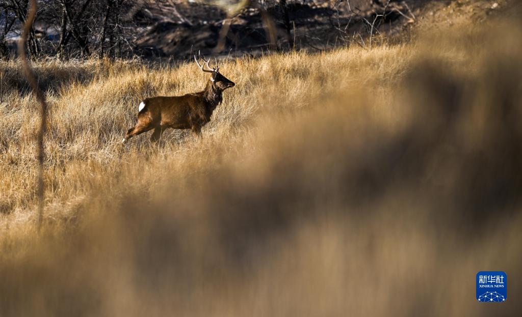 1月29日,一只馬鹿在灤河源國家森林公園內覓食。新華社記者 連振 攝