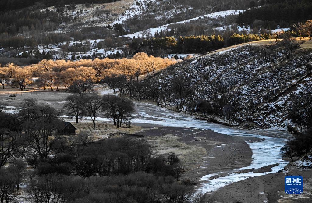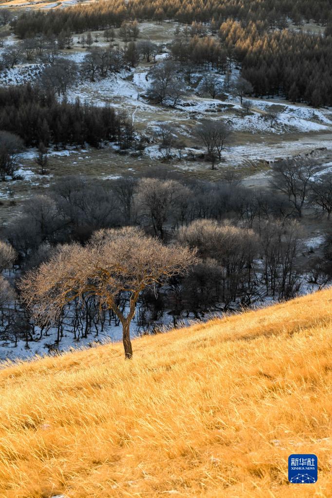 夕陽下的灤河源國家森林公園(1月29日攝)。目前,位于錫林郭勒盟多倫縣三道溝林場境內的內蒙古灤河源國家森林公園被積雪覆蓋,陽光下,植被多彩絢麗,呈現出獨特的冬日景色。新華社記者 連振 攝