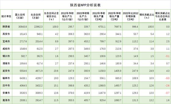 陜西省是中國版圖原點、腹心所在,堪稱中華家園中的內(nèi)園、核心園,自然生態(tài)空間遭受經(jīng)濟社會發(fā)展侵入的時間久、強度大。曾經(jīng)最精美的生態(tài)空間已開辟為現(xiàn)在的城鎮(zhèn)、鄉(xiāng)村,有幸保留下來的生態(tài)空間也已歷經(jīng)掏挖劫掠、生態(tài)系統(tǒng)功能遭受重創(chuàng)。進入新時代,在綠水青山就是金山銀山理念引導下,生態(tài)空間發(fā)生了廣泛而深刻的綠色革命,促進了生態(tài)生產(chǎn)力持續(xù)增長。陜西省生態(tài)空間數(shù)據(jù)中心演算結(jié)果顯示,2022年全省生態(tài)空間植被凈初級生產(chǎn)力水平為339.7公斤/畝,比2012年的295.7公斤/畝增加44公斤/畝,增長14.9%。全省生態(tài)空間植被凈初級生產(chǎn)量由2012年的6701.1萬噸增加到7697.5萬噸,增加996.4萬噸,增長14.9%。