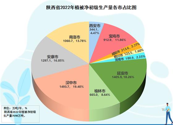全省元生產(chǎn)力區(qū)域分析結(jié)果表明,在三大區(qū)域生態(tài)蛋糕越來越大的同時,生態(tài)蛋糕的空間布局上與結(jié)構(gòu)發(fā)生變化,呈現(xiàn)黃河流域綠色崛起大趨勢。陜北榆林、延安兩市,生態(tài)空間8971.6萬畝,占全省的39.6%;關(guān)中西安、寶雞、咸陽、渭南、銅川五市生態(tài)空間4554.5萬畝,占全省的29.2%;陜南漢中、安康、商洛三市生態(tài)空間9136.2萬畝,占全省的40.2%。2022年,陜北兩市提供了2070.9萬噸植被凈初級生產(chǎn)量,占全省的26.9%,比2012年的1714.1萬噸增加313.8萬噸,增長18.3%,在全省份額上升了1.3個百分點;關(guān)中五市提供了1775.1萬噸的植被凈初級生產(chǎn)量,占全省的23.1%,比2012年的1524.3萬噸250.8萬噸,增長16.4%,在全省份額上升了0.3個百分點;陜南三市提供了3851.5萬噸植被凈初級生產(chǎn)量,占全省的50.0%,比2012年的3462.7萬噸增加388.8萬噸,增長11.2%,在全省份額下降了1.6個百分點。2012-2022年全省新增生態(tài)蛋糕996.4萬噸,陜北兩市貢獻31.5%,關(guān)中五市貢獻29.5%,陜南三市貢獻39.0%。陜北、關(guān)中提供的生態(tài)蛋糕占全省的份額已由2012年的48.4%提高到2022年的50.0%。