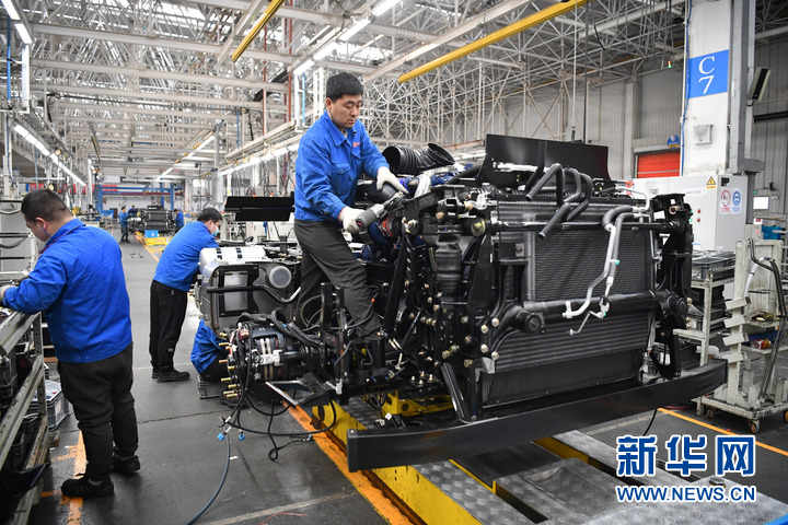 新華網(wǎng)西安2月23日電(史夢 張思思)工業(yè)機(jī)器人揮舞長臂,工人在生產(chǎn)線上緊張忙碌。在位于西安經(jīng)開區(qū)涇渭新城的陜汽控股集團(tuán),總裝車間正馬力全開,每6分鐘就有一輛整車從這里下線。