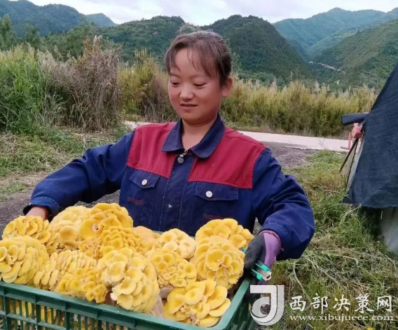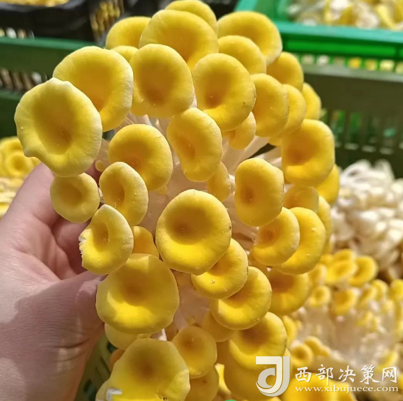 西部決策網(wǎng)訊(記者帥華鋒 通訊員 王雪梅) 時下,當(dāng)你走進甘肅兩當(dāng)縣左家鄉(xiāng)食用菌大棚里,一層層菌棒架子上,一簇簇金燦燦的、呈喇叭狀的榆黃蘑新鮮水嫩,好似綻放的金花,長勢喜人,工作人員正在采收成熟的榆黃蘑,一派喜人的豐收景象。