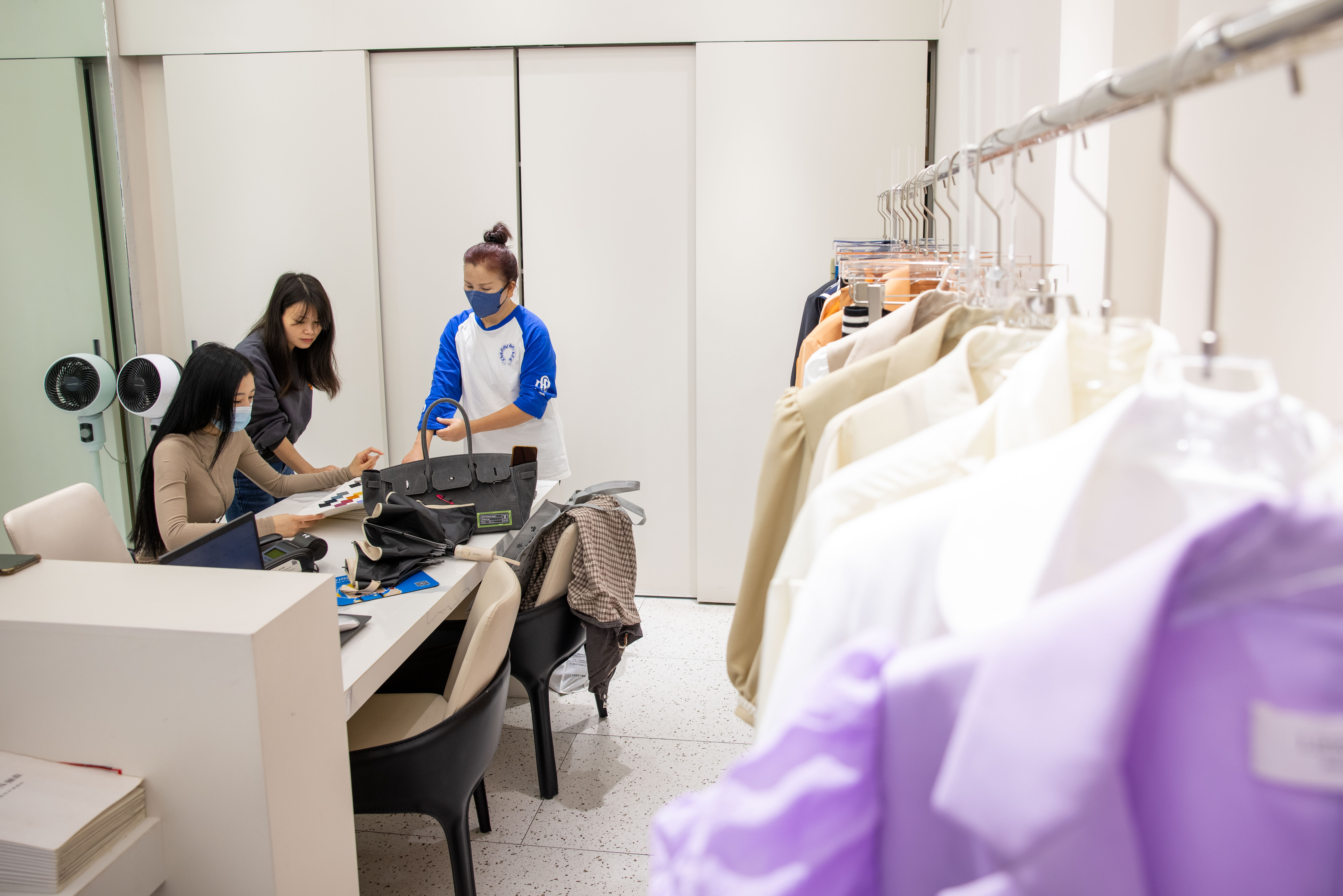 客商在浙江省紹興市柯橋區(qū)中國輕紡城市場內選購服裝(2022年11月11日攝)。新華社記者 江漢 攝