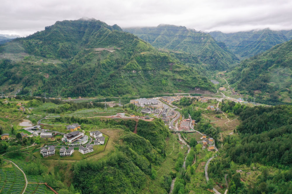 這是重慶市石柱縣中益鄉(xiāng)華溪村景觀(2022年4月14日攝,無人機照片)。目前中益鄉(xiāng)擁有中藥材、特色蔬果等支柱產業(yè)。新華社記者 唐奕 攝