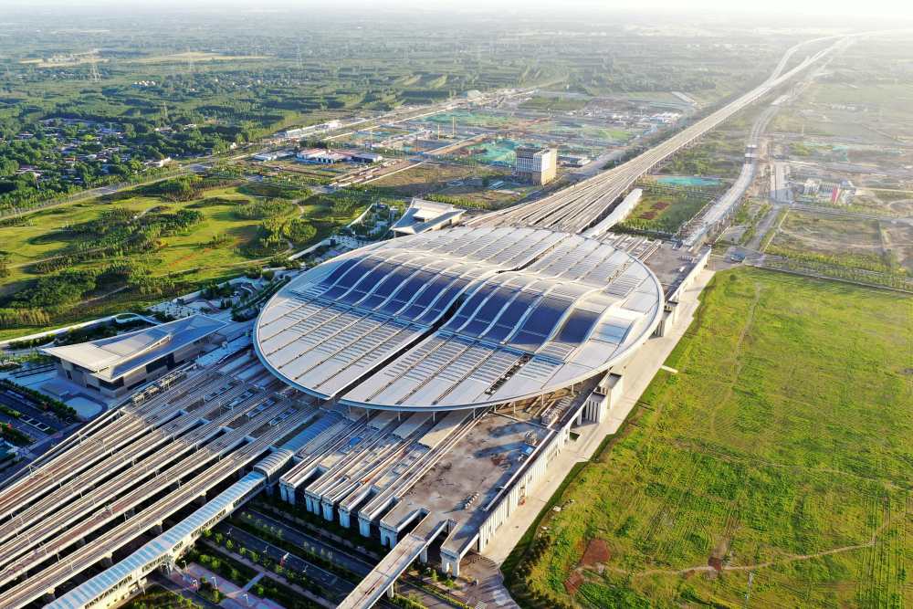 這是雄安站(6月2日攝,無人機照片)。雄安站位于雄安新區(qū)昝崗片區(qū),是雄安新區(qū)開工建設的第一個重大基礎設施項目,具有標志性意義。新華社記者 朱旭東 攝