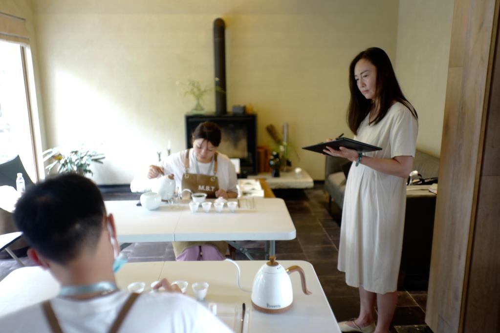 學員在莫干山民宿管家培訓中心內進行茶藝考核。新華社記者徐中哲 攝