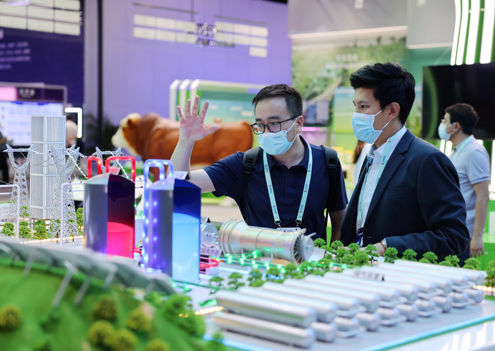 5月26日,觀眾在在中關村國家自主創(chuàng)新示范區(qū)展示中心了解100MW先進壓縮空氣儲能技術。新華社記者 張晨霖 攝