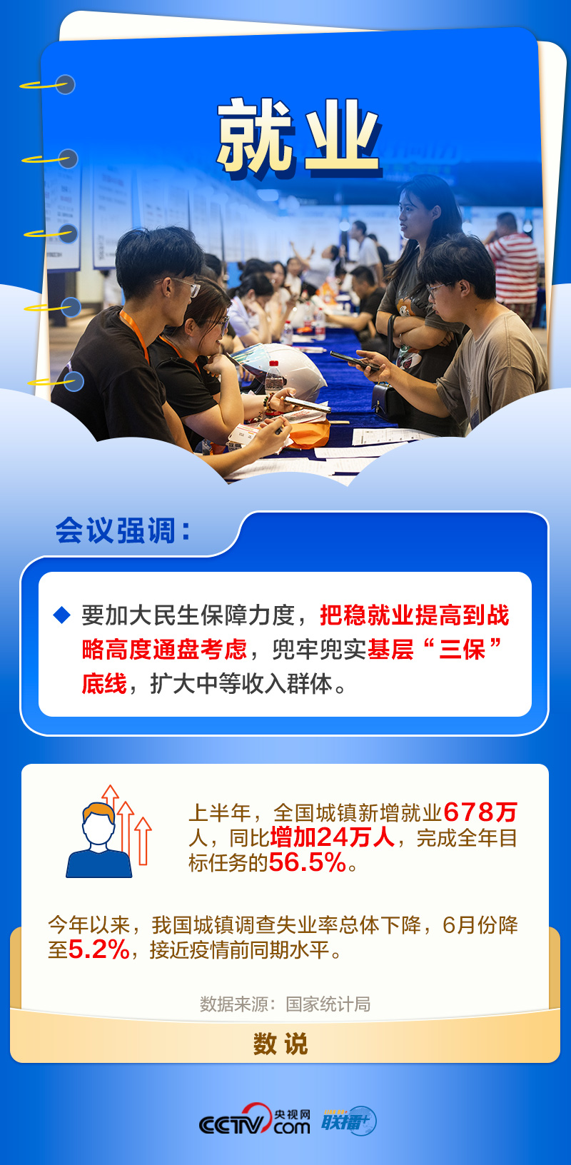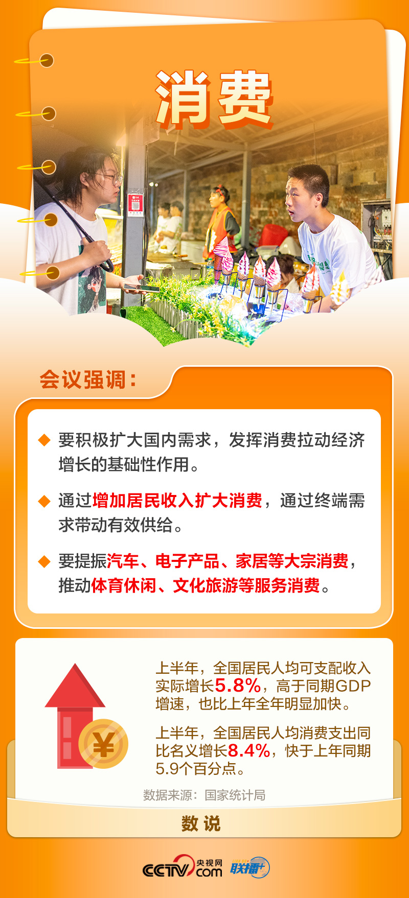 會(huì)議強(qiáng)調(diào),要“用好政策空間、找準(zhǔn)發(fā)力方向,扎實(shí)推動(dòng)經(jīng)濟(jì)高質(zhì)量發(fā)展”“大力推動(dòng)現(xiàn)代化產(chǎn)業(yè)體系建設(shè)”“通過增加居民收入擴(kuò)大消費(fèi)”“切實(shí)優(yōu)化民營(yíng)企業(yè)發(fā)展環(huán)境”“加大民生保障力度”等。其中,消費(fèi)、住房、就業(yè)等工作部署事關(guān)你我,一起來(lái)了解。