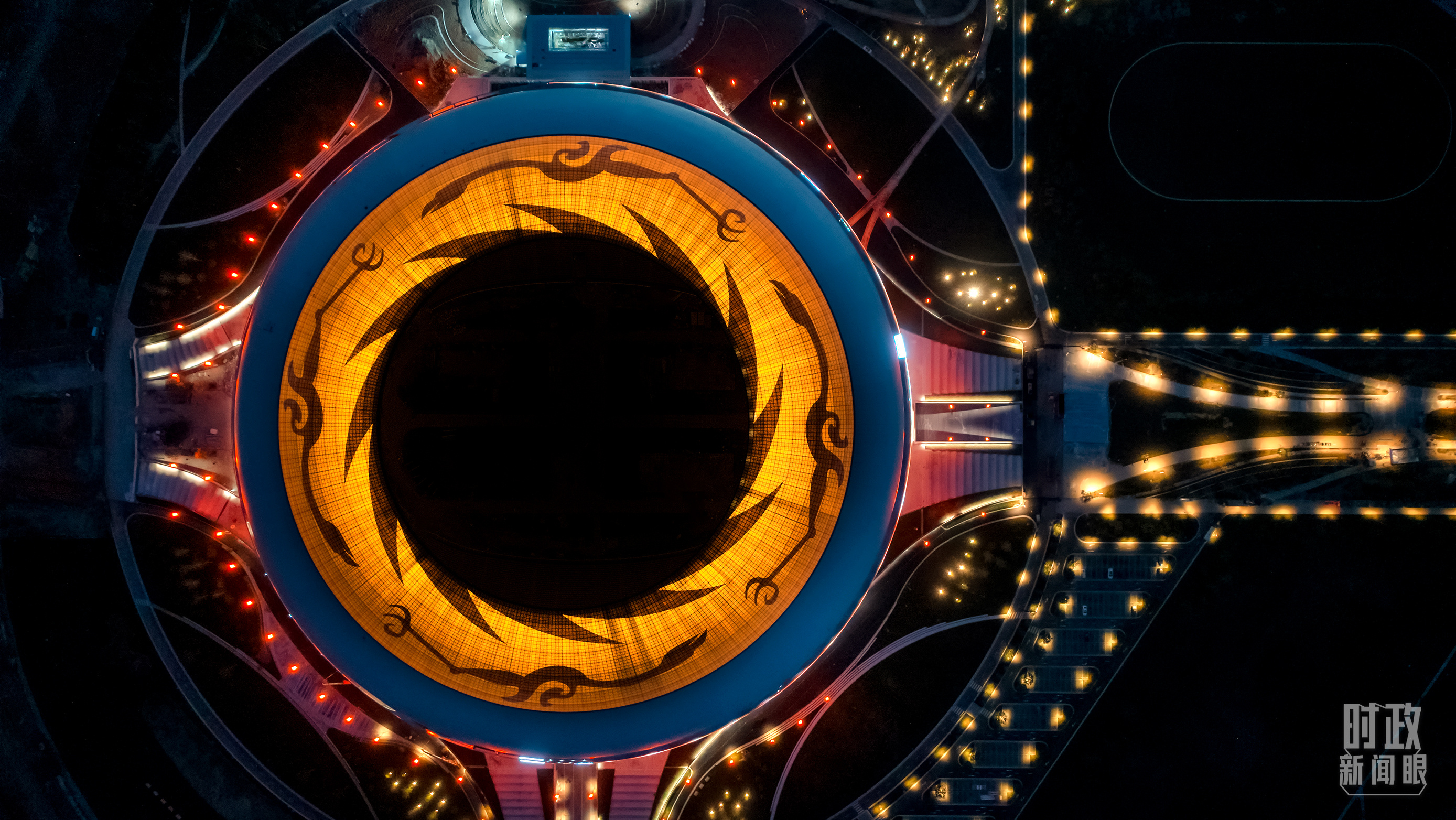 主體育場頂部,是由12540塊彩釉玻璃拼裝成總面積約27000平方米的“太陽神鳥”圖案。從開幕式倒計時,到主火炬塔點燃,這一古蜀文化代表性符號和中國文化遺產(chǎn)標(biāo)志貫穿始終。