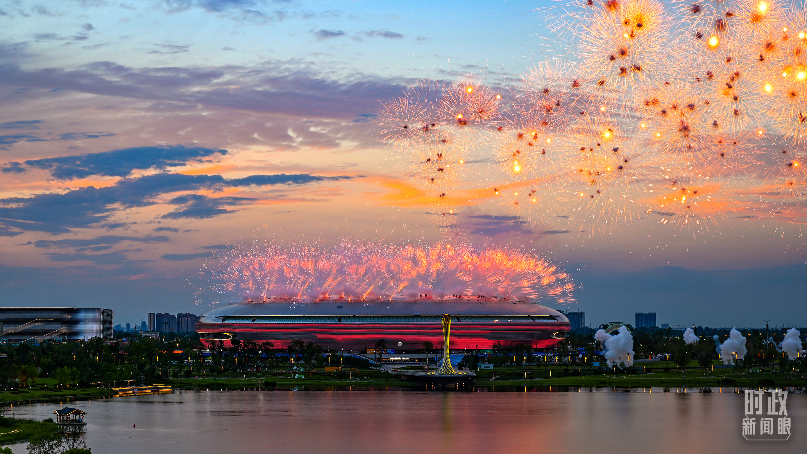 晚上,東安湖體育公園主體育場,習(xí)近平主席同國際貴賓共同出席成都大運(yùn)會開幕式。