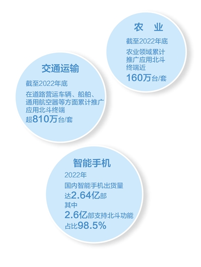 從北斗一號到北斗三號,從覆蓋亞太到服務(wù)全球,作為重要的新型基礎(chǔ)設(shè)施,北斗系統(tǒng)深度賦能各行各業(yè),成為經(jīng)濟(jì)社會發(fā)展的時空基石。2022年,我國衛(wèi)星導(dǎo)航與位置服務(wù)產(chǎn)業(yè)總體產(chǎn)值超過5000億元,產(chǎn)生顯著經(jīng)濟(jì)效益。
