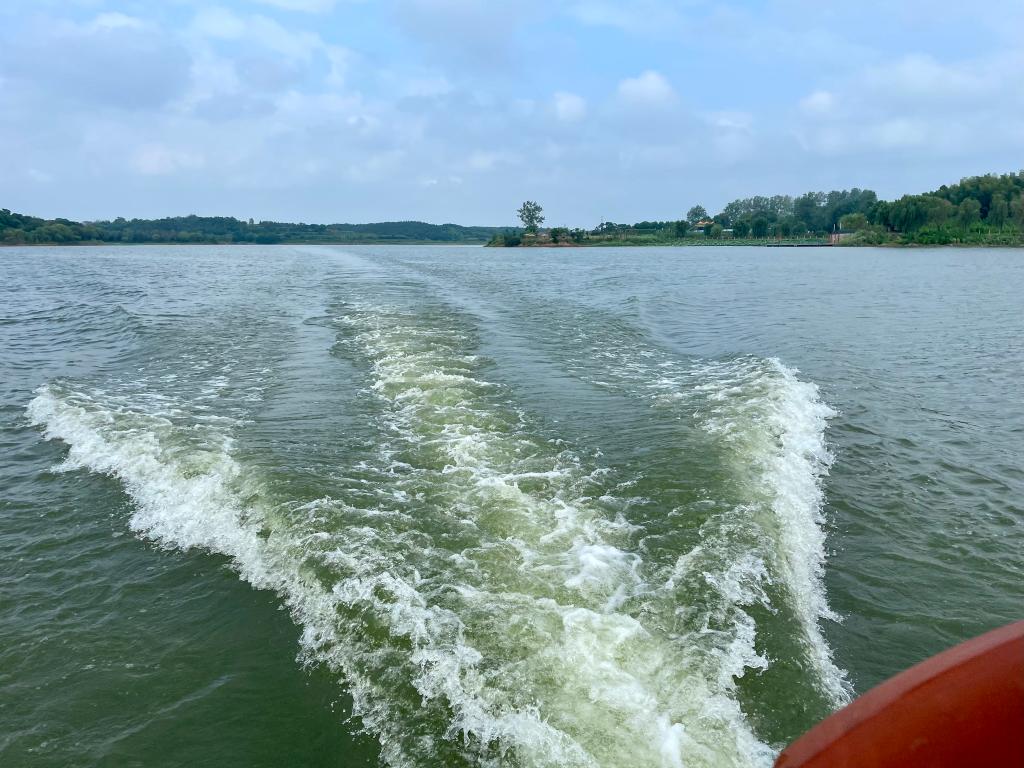 在毛里湖中,記者乘坐的小艇行經(jīng)島嶼、峽灣時(shí),水邊不時(shí)會(huì)出現(xiàn)一叢叢隨波搖曳的野生荷花、菱角,一群群嬉戲覓食的野鴨、鷗鷺。