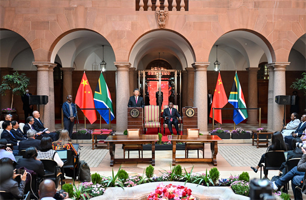 我們都高度重視民心相通,主張雙方要做相知相親的友好伙伴。我們要在合作中堅持以人民為中心,讓合作成果更多惠及兩國人民。中方支持南非政府加強(qiáng)職業(yè)教育、促進(jìn)青年就業(yè)的努力。雙方同意加強(qiáng)教育、科技、文化、旅游等領(lǐng)域交流合作。