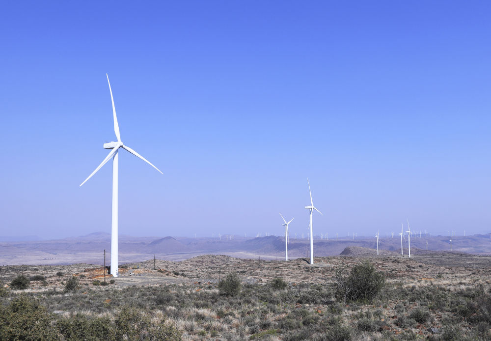 這是在南非北開普省德阿鎮(zhèn)拍攝的德阿風(fēng)電項(xiàng)目風(fēng)機(jī)(2023年8月10日攝)。由中國(guó)龍?jiān)措娏瘓F(tuán)南非公司運(yùn)營(yíng)的德阿風(fēng)電項(xiàng)目每年發(fā)電量超過7.5億千瓦時(shí),相當(dāng)于節(jié)約20多萬噸標(biāo)準(zhǔn)煤,減排二氧化碳約70萬噸。