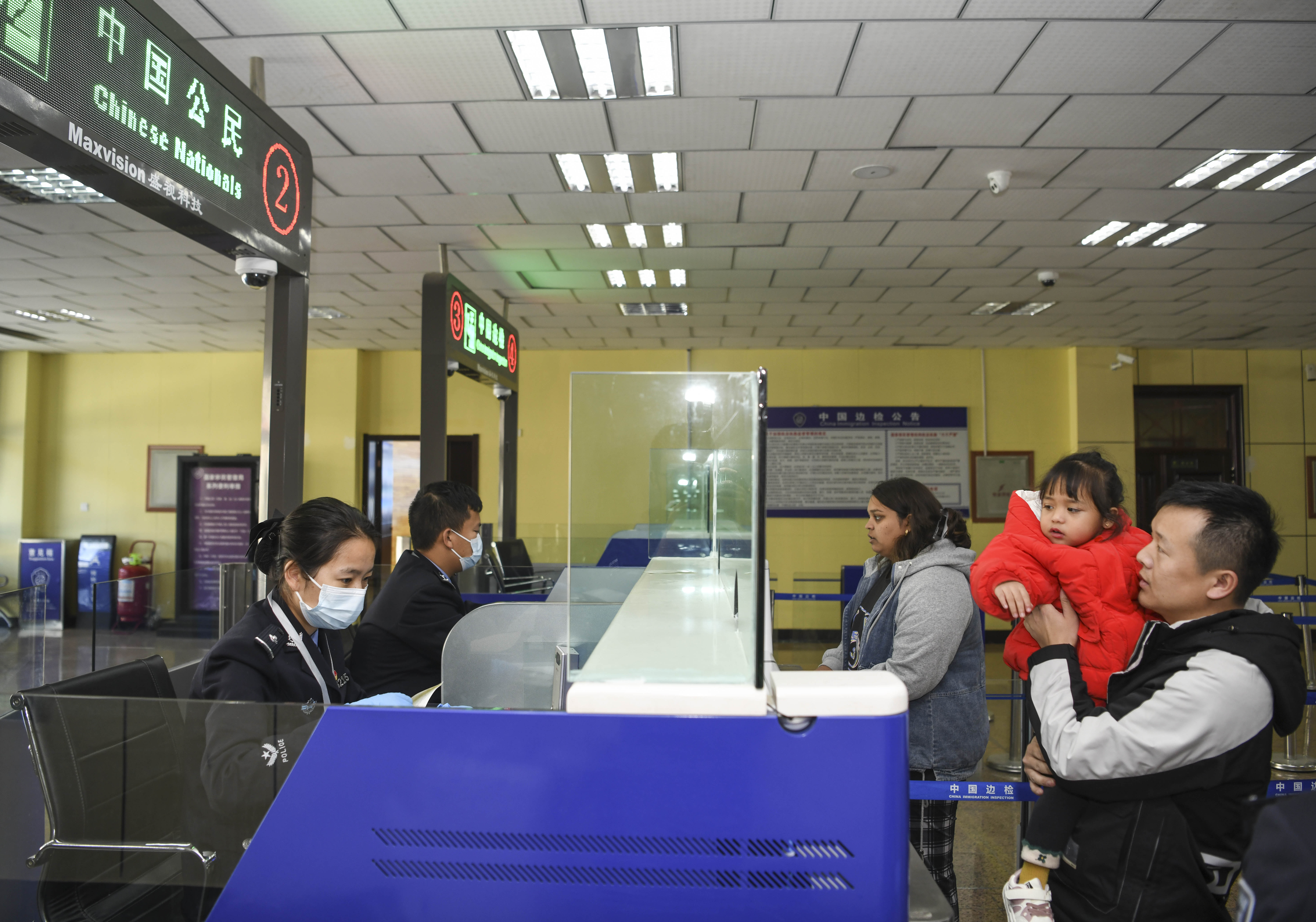 2023年8月29日,準(zhǔn)備前往巴基斯坦探親的跨國夫婦鄭銀果、索娜帶著女兒辦理通關(guān)手續(xù)。