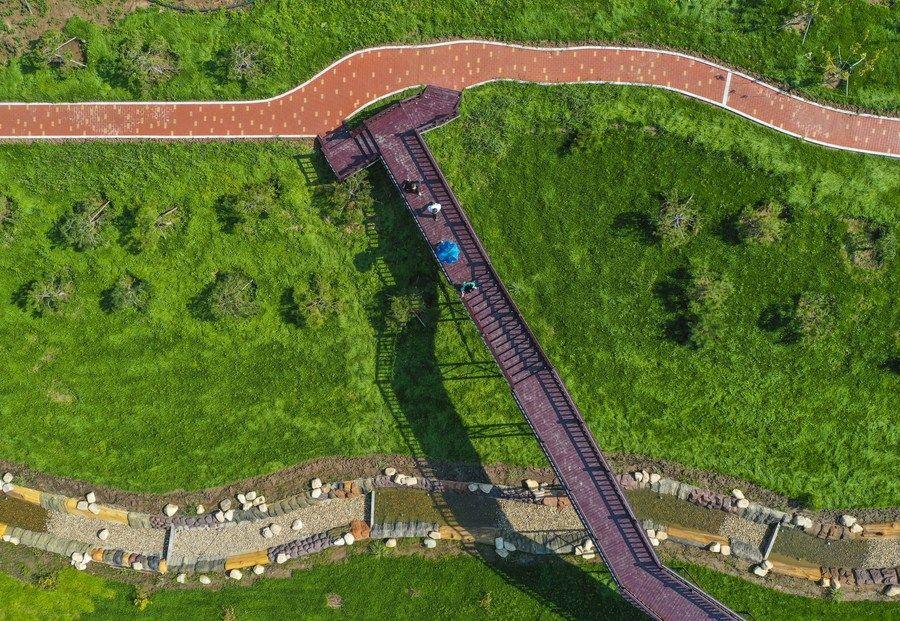 △游人在吉林長春市九臺(tái)區(qū)清水村千畝苗木花卉休閑旅游觀光產(chǎn)業(yè)園區(qū)參觀游覽。