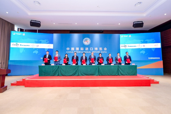 拜耳中國公共與政府事務及可持續(xù)發(fā)展副總裁高勇博士(左五)代表拜耳提前簽約第七屆進博會