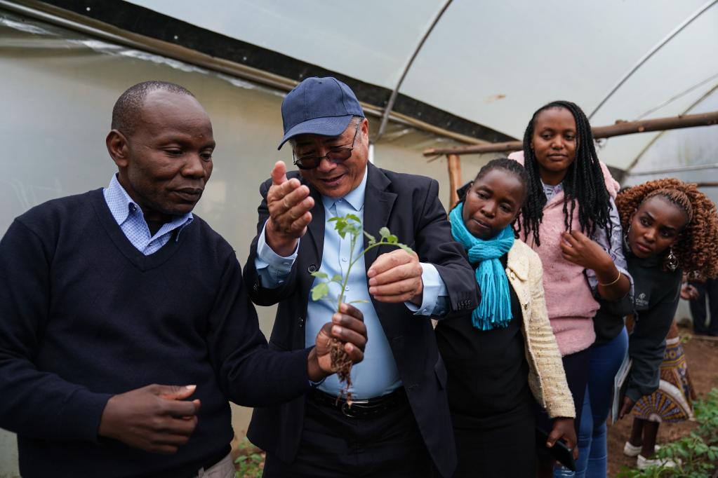 9月18日,在肯尼亞納庫(kù)魯郡馬坦吉提薩村,來自中國(guó)的農(nóng)學(xué)教授劉高瓊(左二)為肯方學(xué)員指導(dǎo)農(nóng)業(yè)技術(shù)。(新華社記者韓旭攝)
