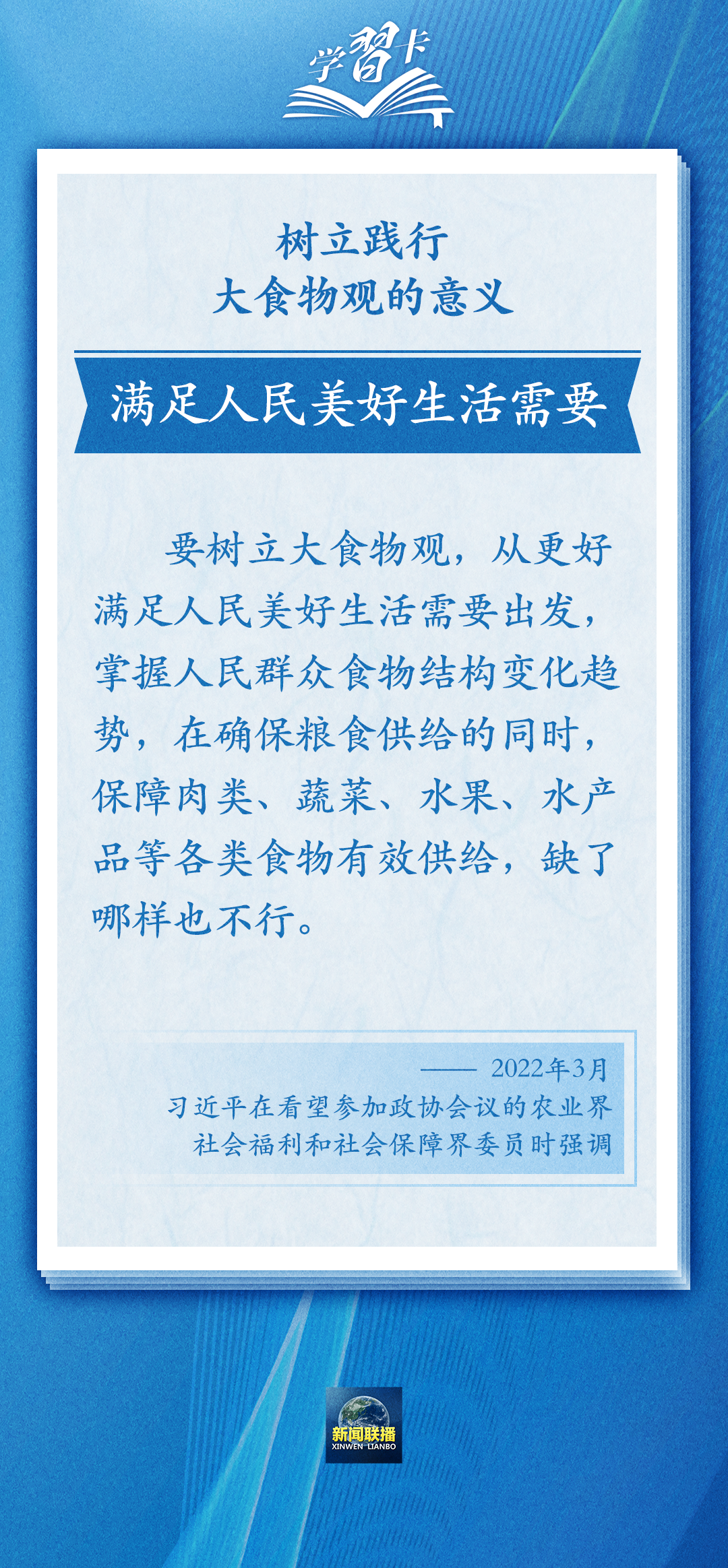 今年4月,總書記在廣東湛江考察時(shí)指出,要樹立大食物觀,既向陸地要食物,也向海洋要食物。前不久,總書記主持召開新時(shí)代推動(dòng)?xùn)|北全面振興座談會(huì)強(qiáng)調(diào),踐行大食物觀,把農(nóng)業(yè)建成大產(chǎn)業(yè)。