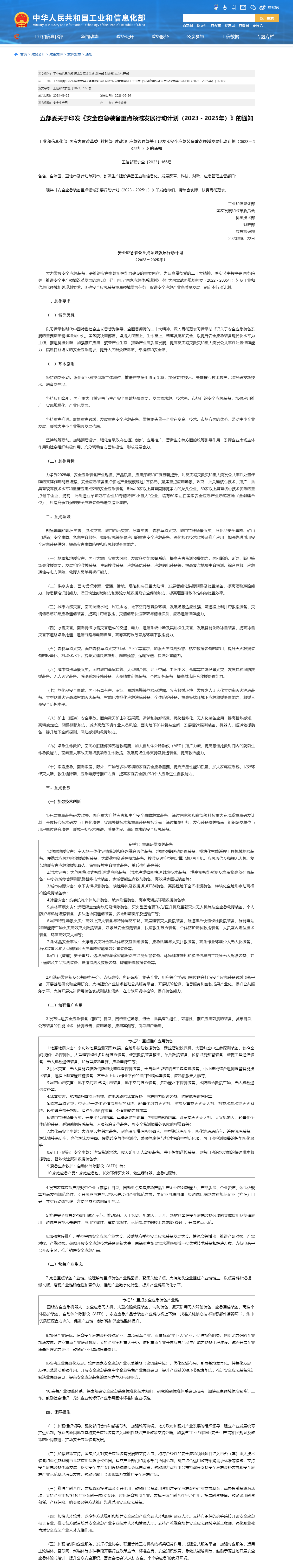 工信部官網(wǎng)消息,近日,工業(yè)和信息化部、國(guó)家發(fā)展改革委、科技部、財(cái)政部、應(yīng)急管理部等五部門聯(lián)合印發(fā)《安全應(yīng)急裝備重點(diǎn)領(lǐng)域發(fā)展行動(dòng)計(jì)劃(2023-2025年)》。其中提出,力爭(zhēng)到2025年,安全應(yīng)急裝備產(chǎn)業(yè)規(guī)模、產(chǎn)品質(zhì)量、應(yīng)用深度和廣度顯著提升,對(duì)防災(zāi)減災(zāi)救災(zāi)和重大突發(fā)公共事件處置保障的支撐作用明顯增強(qiáng)。安全應(yīng)急裝備重點(diǎn)領(lǐng)域產(chǎn)業(yè)規(guī)模超過(guò)1萬(wàn)億元。聚焦重點(diǎn)應(yīng)用場(chǎng)景,攻克一批關(guān)鍵核心技術(shù),推廣一批具有較高技術(shù)水平和顯著應(yīng)用成效的安全應(yīng)急裝備,形成10家以上具有國(guó)際競(jìng)爭(zhēng)力的龍頭企業(yè)、50家以上具有核心技術(shù)優(yōu)勢(shì)的重點(diǎn)骨干企業(yè),涌現(xiàn)一批制造業(yè)單項(xiàng)冠軍企業(yè)和專精特新“小巨人”企業(yè),培育50家左右國(guó)家安全應(yīng)急產(chǎn)業(yè)示范基地(含創(chuàng)建單位),打造競(jìng)爭(zhēng)力強(qiáng)的安全應(yīng)急裝備先進(jìn)制造業(yè)集群。