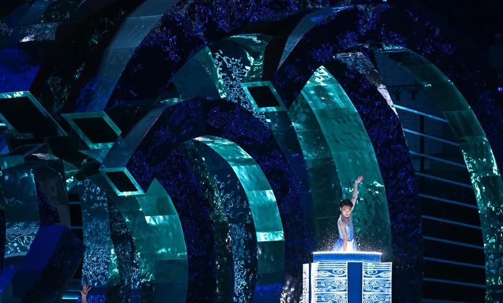 開幕式上,實證中華五千年文明史的良渚文化多次亮相。在迎賓表演《水潤秋輝》中,演員們所擊之鼓以良渚玉琮為原型,傳遞來自遠(yuǎn)古的呼喚,以良渚之光交映秋分之輝。在短片《相約杭州》中,“良渚少女”與現(xiàn)代少年跨越時空同頻共振,展現(xiàn)出“愛達(dá)未來”的古今相融瞬間。