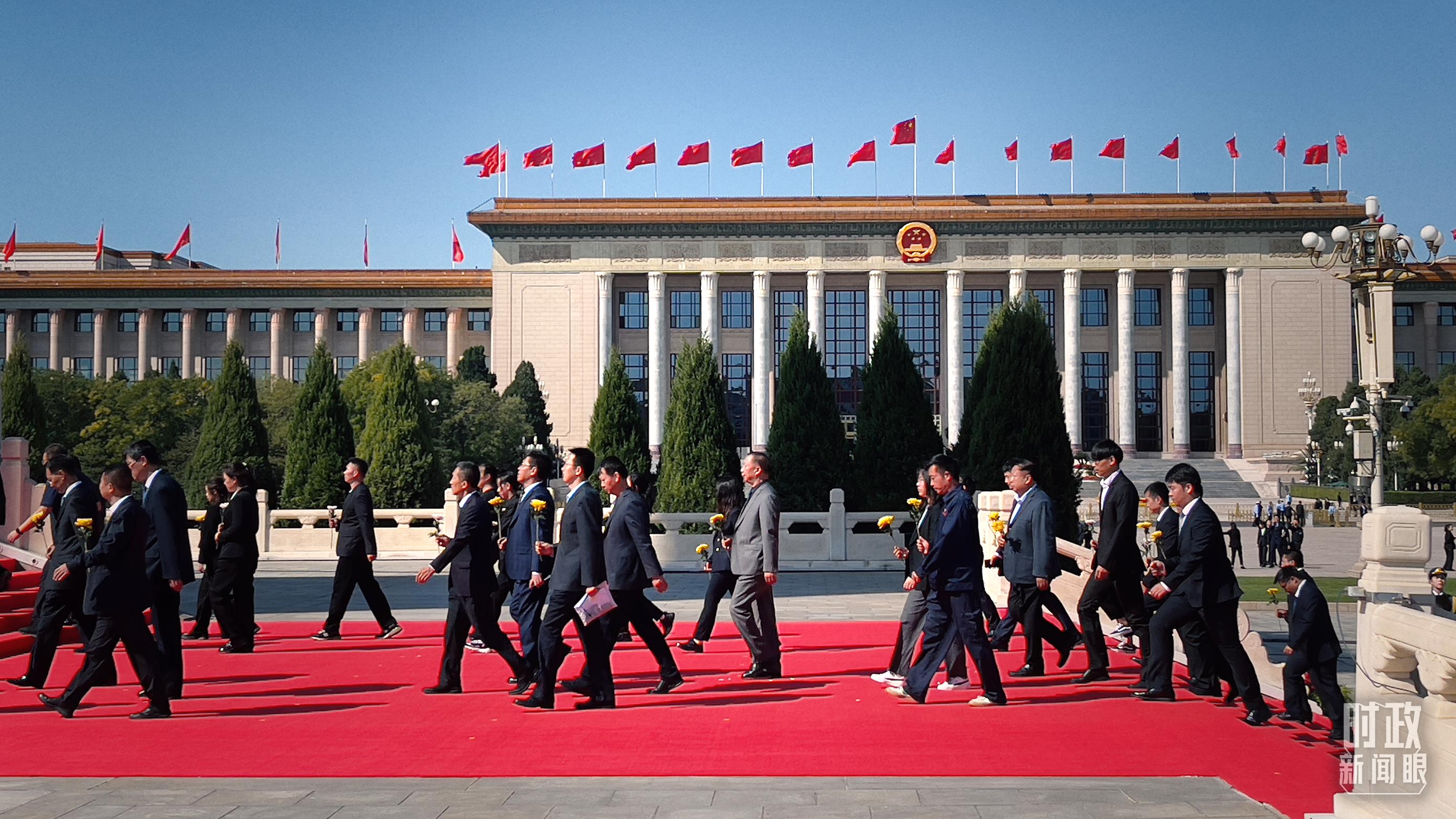 △首都各界代表依次走到紀念碑碑前,獻上手中鮮花。(總臺央視記者段德文、鄂介甫拍攝)