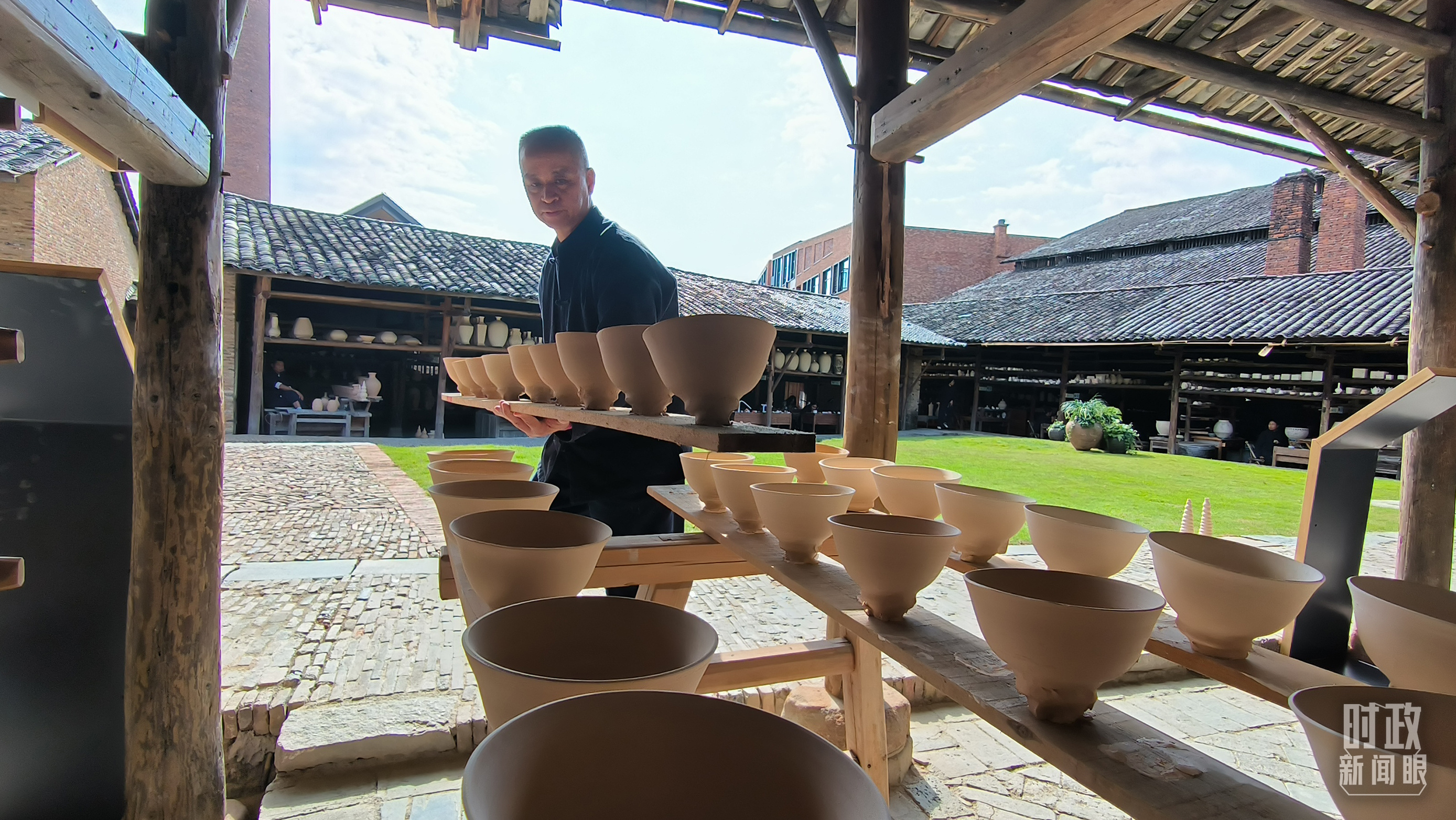 △匠人正在晾曬陶瓷制品。(總臺央視記者范凱拍攝)
