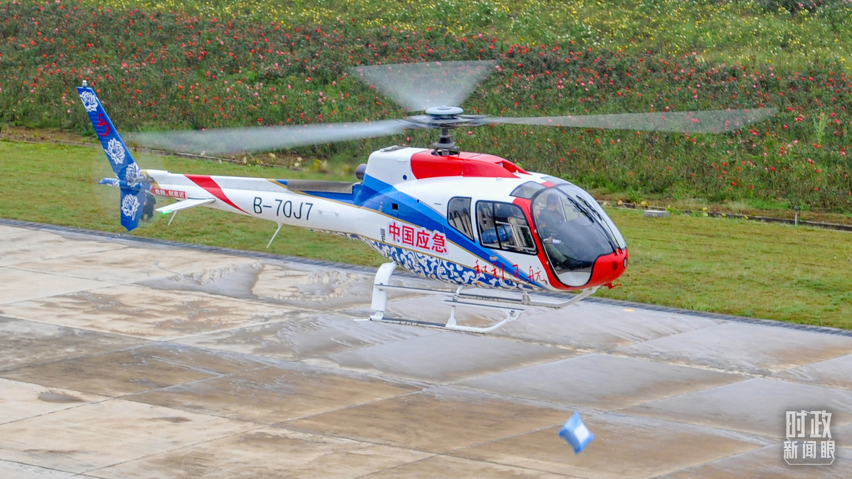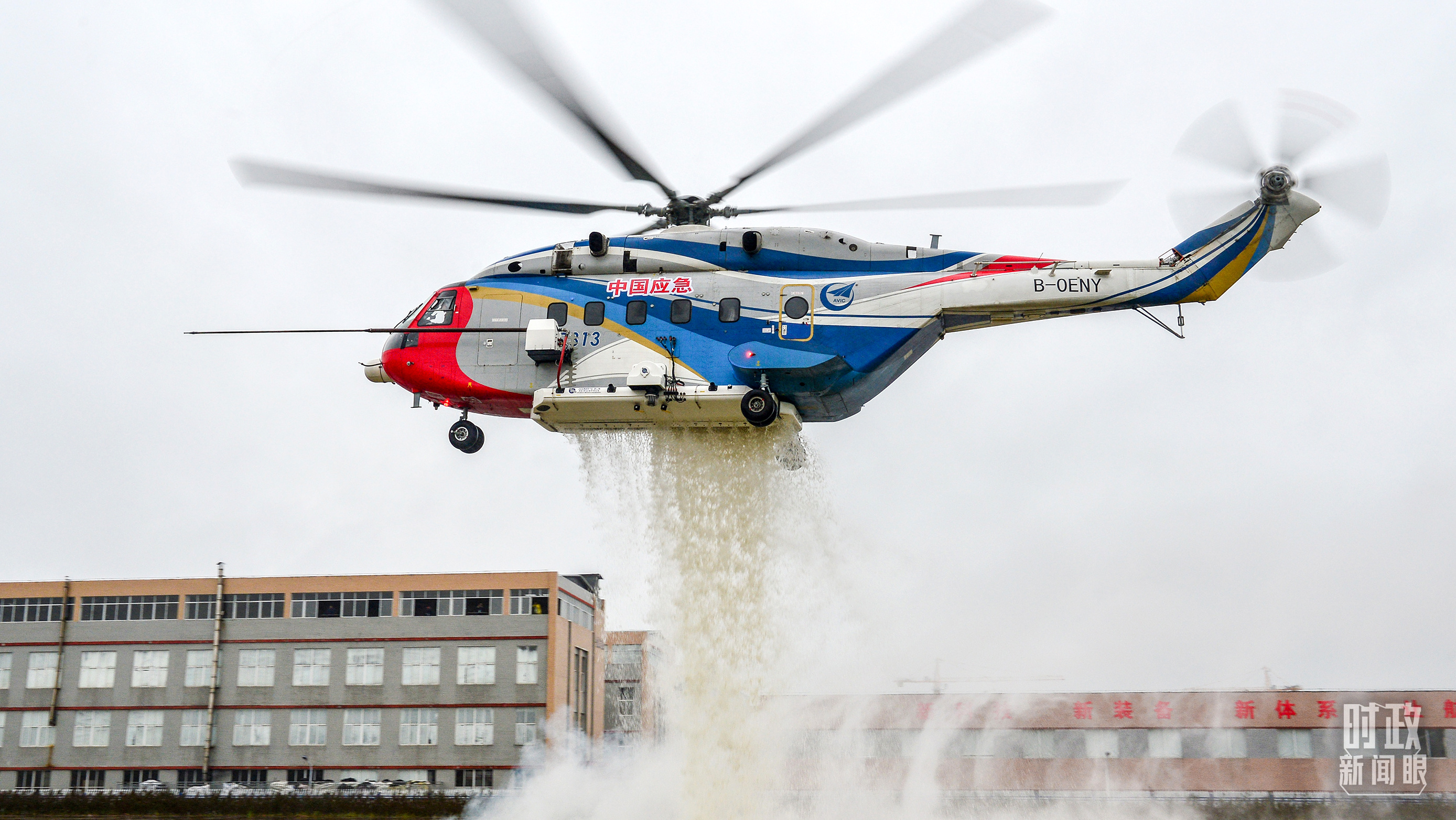 △昌飛制造的AC313直升機正在進行護林滅火演練。