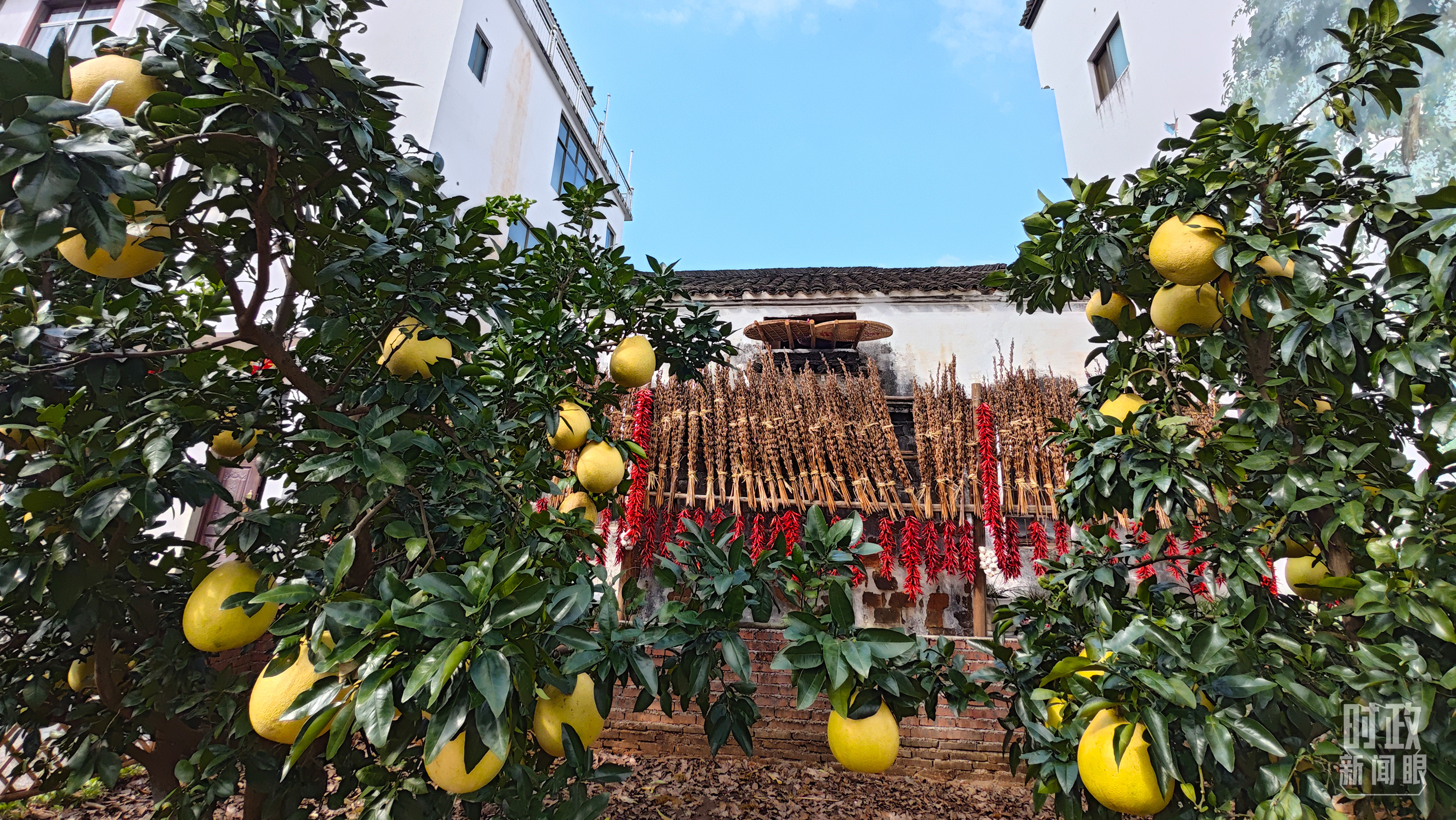 △石門村農(nóng)家小院里碩果累累。(總臺央視記者許永松拍攝)