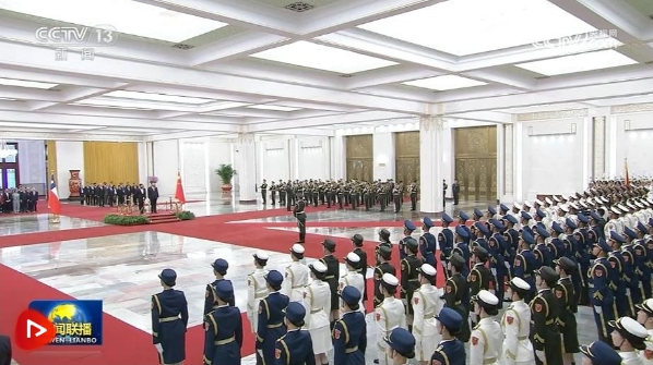 國家主席習(xí)近平17日上午在人民大會堂北大廳舉行儀式,歡迎智利共和國總統(tǒng)加夫列爾·博里奇對我國進行國事訪問。
