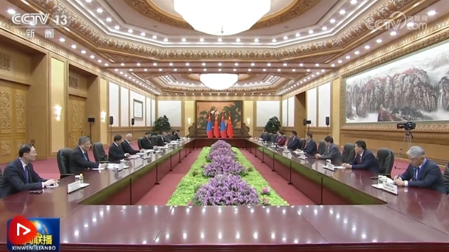 10月19日上午,國家主席習(xí)近平在人民大會(huì)堂會(huì)見來華出席第三屆“一帶一路”國際合作高峰論壇的蒙古國總統(tǒng)呼日勒蘇赫。