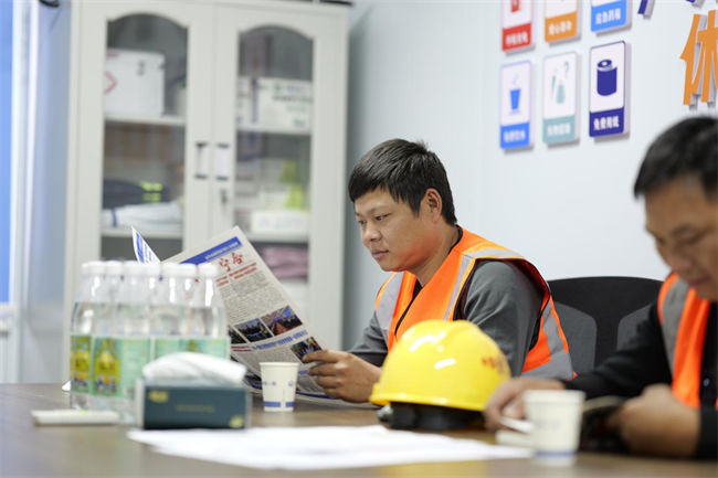服務站門口即是S312省道,距離轉體梁主要施工工點不足500米,步行8到10分鐘可達。服務對象包括勞動工人、環(huán)衛(wèi)綠化工人、市政維修工人等戶外勞動者。站點內溫暖明亮,空調和飲水機的冷熱水24小時提供便利,雨傘架、充電站解決燃眉之急。急救藥箱內含有退燒貼和暖貼,感冒消炎、消毒止血常備藥以供不時之需,除此之外還增設特色閱讀區(qū),各類書籍、月刊、報紙可供勞動者休息時閱讀放松,并由工作人員定期更新。