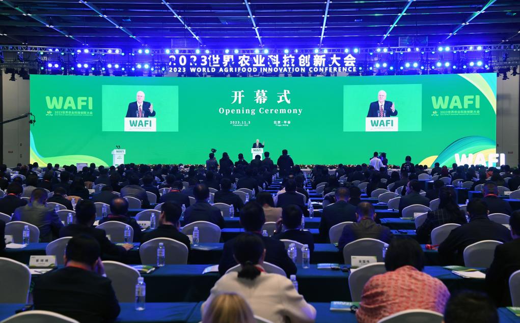 11月3日,世界糧食獎基金會榮譽主席肯尼思·奎因在2023世界農(nóng)業(yè)科技創(chuàng)新大會開幕式上致辭。新華社記者 任超 攝