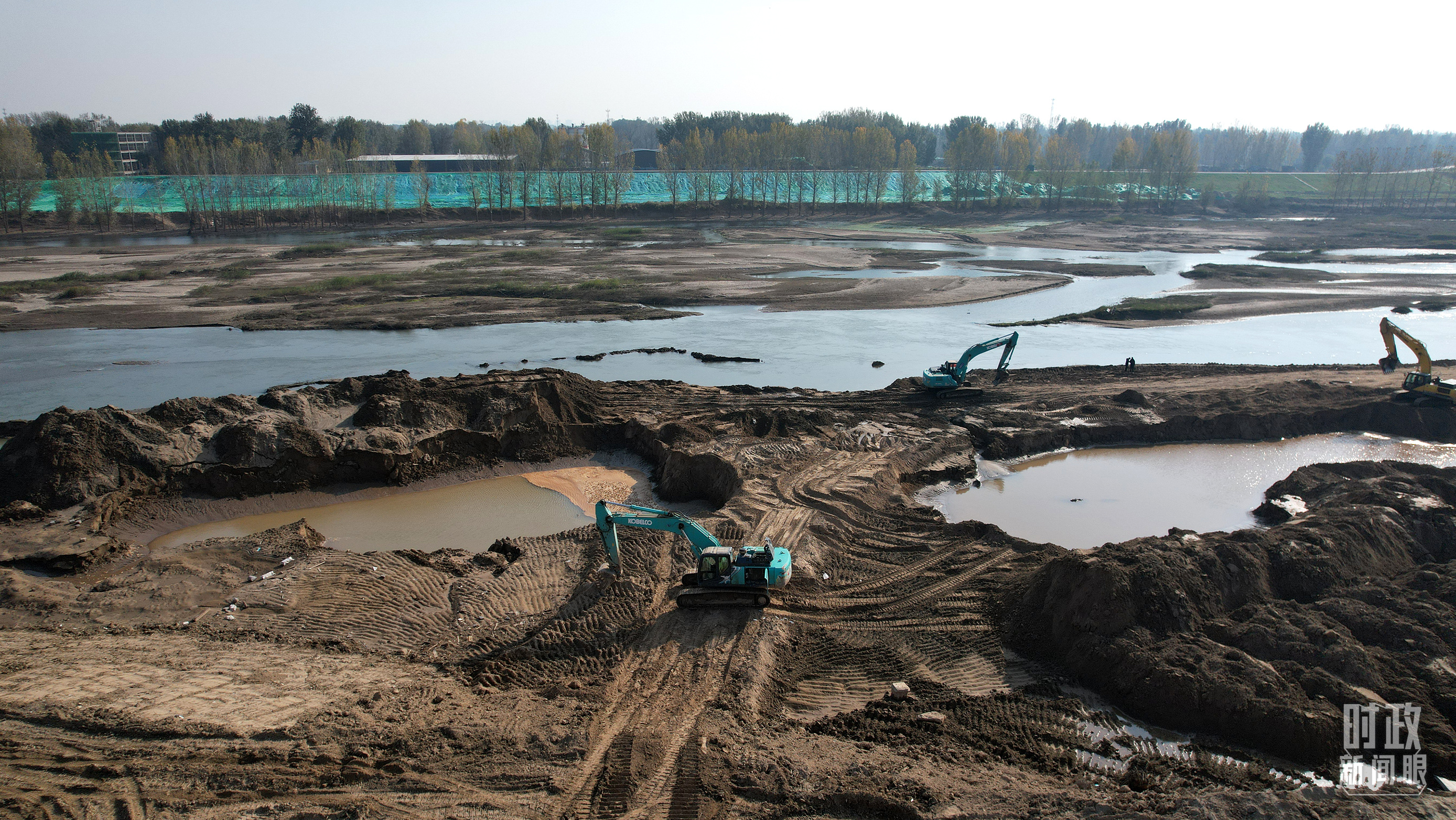 △ 白溝河治理工程(涿州段)施工現(xiàn)場航拍。(總臺(tái)國廣記者李晉拍攝)