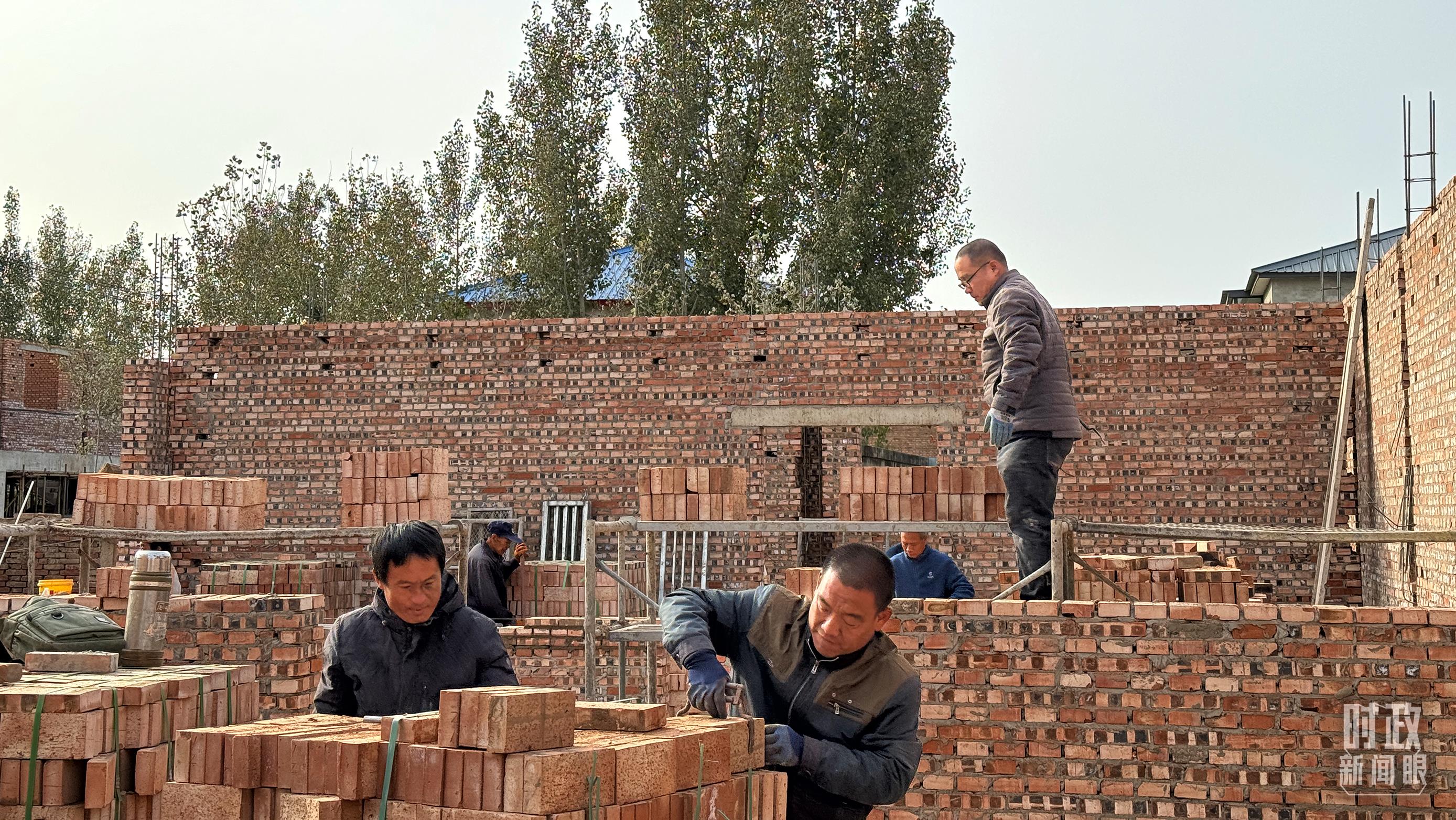 △ 刁窩鎮(zhèn)萬全莊村村民正在重建房屋。(總臺(tái)央視記者李輝拍攝)