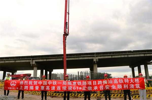 近日,中鐵一局一公司承建的揭惠鐵路站前工程2標項目迎來新進展,全線控制性工程跨梅汕高鐵特大橋上跨揭普惠高速(83+152+83)m連續(xù)梁61#主墩承臺暨項目首個單體積最大承臺安全順利澆筑完成,標志著該橋梁工程取得了階段性進展,為后續(xù)連續(xù)梁施工奠定了基礎(chǔ)。