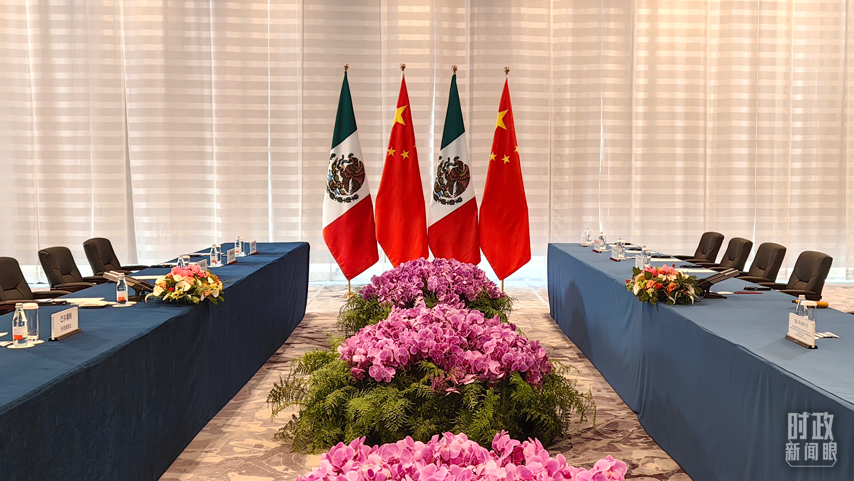 △中墨兩國會(huì)談開始前的現(xiàn)場(chǎng)。(總臺(tái)央視記者楊波拍攝)