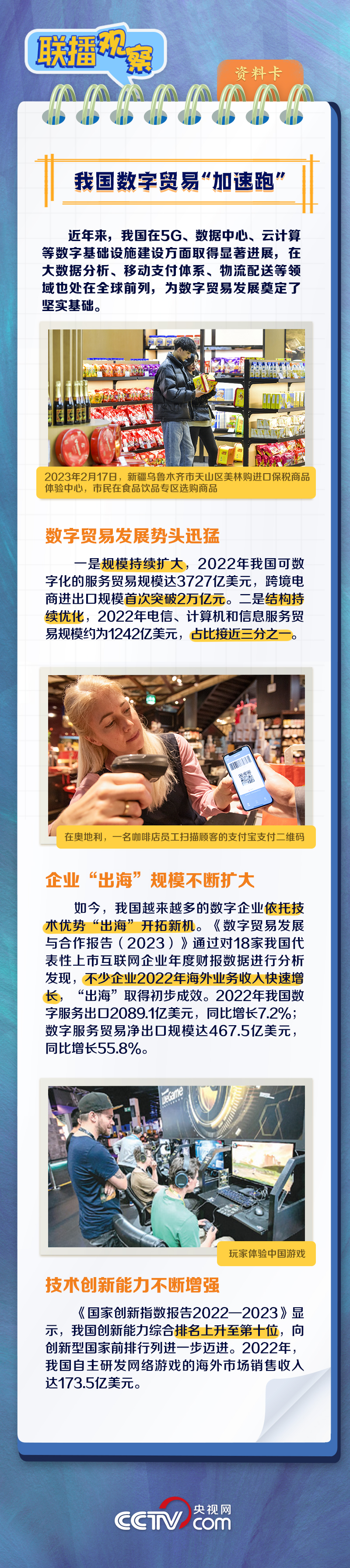 當(dāng)前,貨物貿(mào)易和服務(wù)貿(mào)易都呈現(xiàn)出不可逆的數(shù)字化轉(zhuǎn)型趨勢。什么是數(shù)字貿(mào)易?本屆數(shù)貿(mào)會有什么看點(diǎn)和亮點(diǎn)?我國數(shù)字貿(mào)易有何發(fā)展成果?央視網(wǎng)《聯(lián)播觀察》與您一同了解。