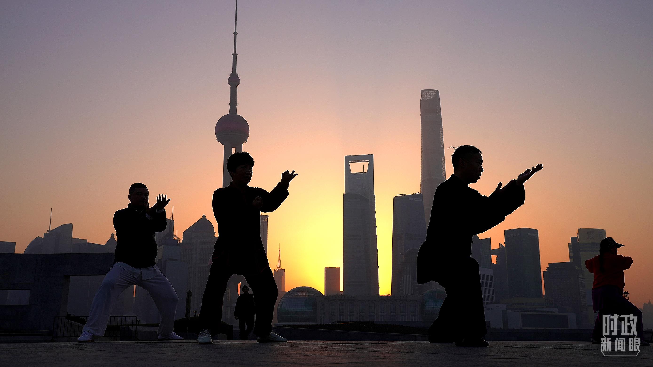 △正在晨練的上海市民。(總臺央視記者劉琦拍攝)