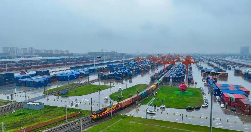 △2023年9月28日,中歐班列長(zhǎng)安號(hào)第20000列從陜西西安國(guó)際港站開出。