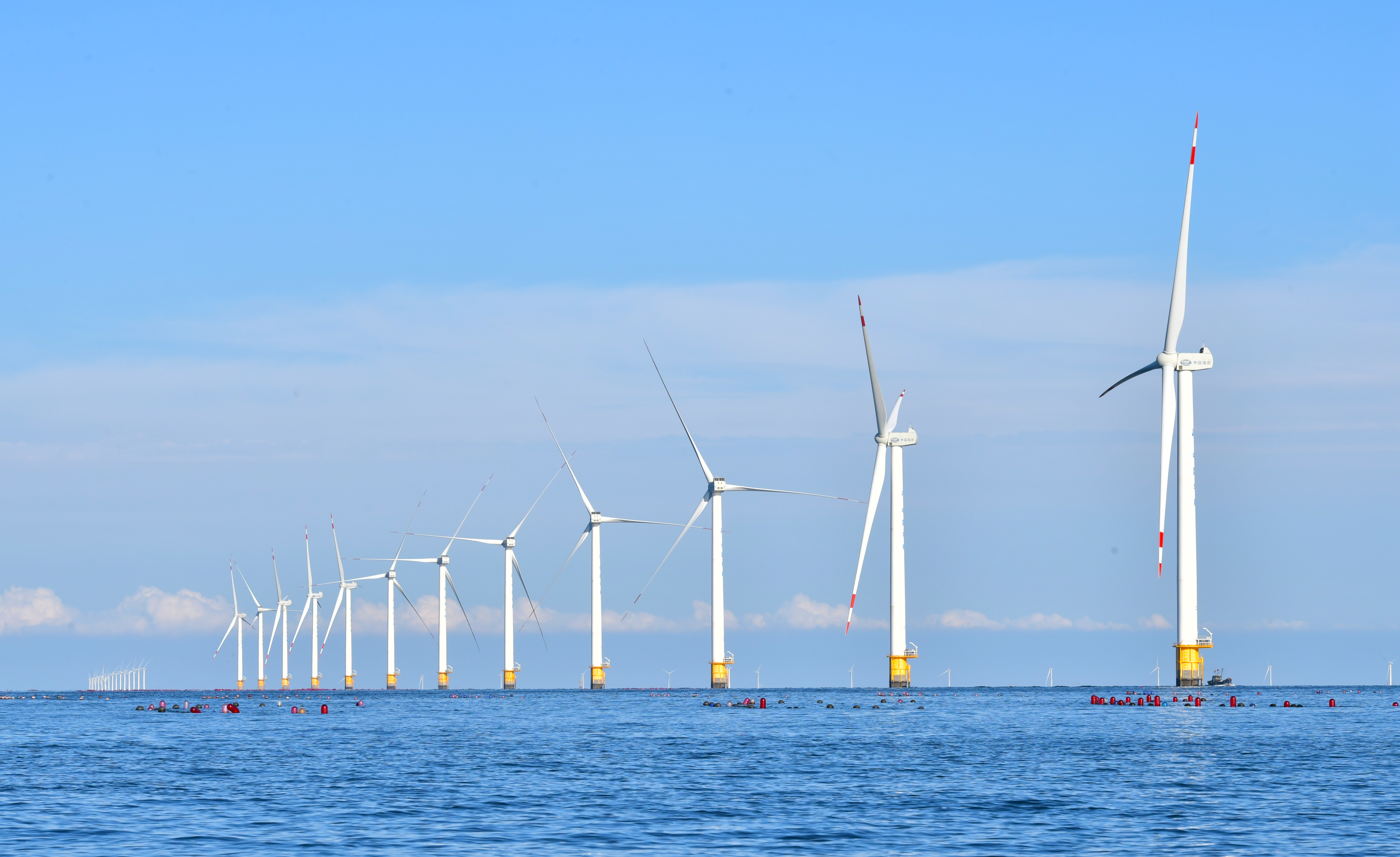 2023年9月13日拍攝的遼寧大連莊河海上風(fēng)電項(xiàng)目。新華社記者 楊青 攝