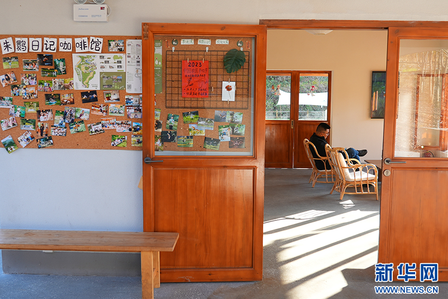 冬日,在石泉縣城關(guān)鎮(zhèn)絲銀壩村草池灣朱鹮日記咖啡館,一游客享受冬日午后時光。新華網(wǎng) 楊喜龍 攝