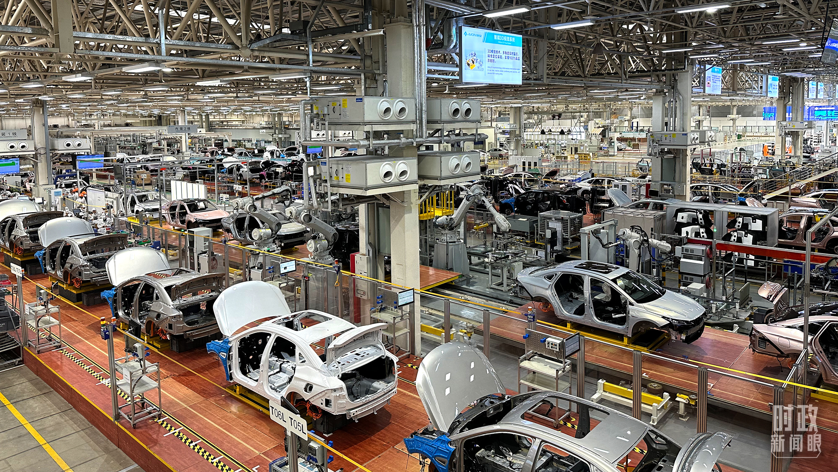 △廣汽埃安總裝車間智能生產(chǎn)線展示。(總臺(tái)央視記者趙化拍攝)