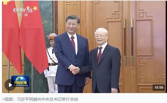 12月12日下午,越共中央駐地。越共中央總書(shū)記阮富仲在會(huì)談時(shí)說(shuō),“相信習(xí)近平總書(shū)記、國(guó)家主席這次訪問(wèn)必將成為推動(dòng)越中關(guān)系更上一層樓的歷史里程碑”。