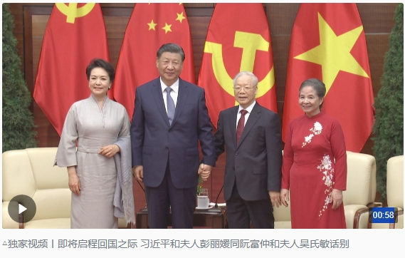 12月13日下午,在結(jié)束對(duì)越南進(jìn)行國(guó)事訪問(wèn)即將啟程回國(guó)之際,習(xí)近平夫婦同越共中央總書(shū)記阮富仲夫婦話(huà)別。一段對(duì)話(huà),余韻悠長(zhǎng)。