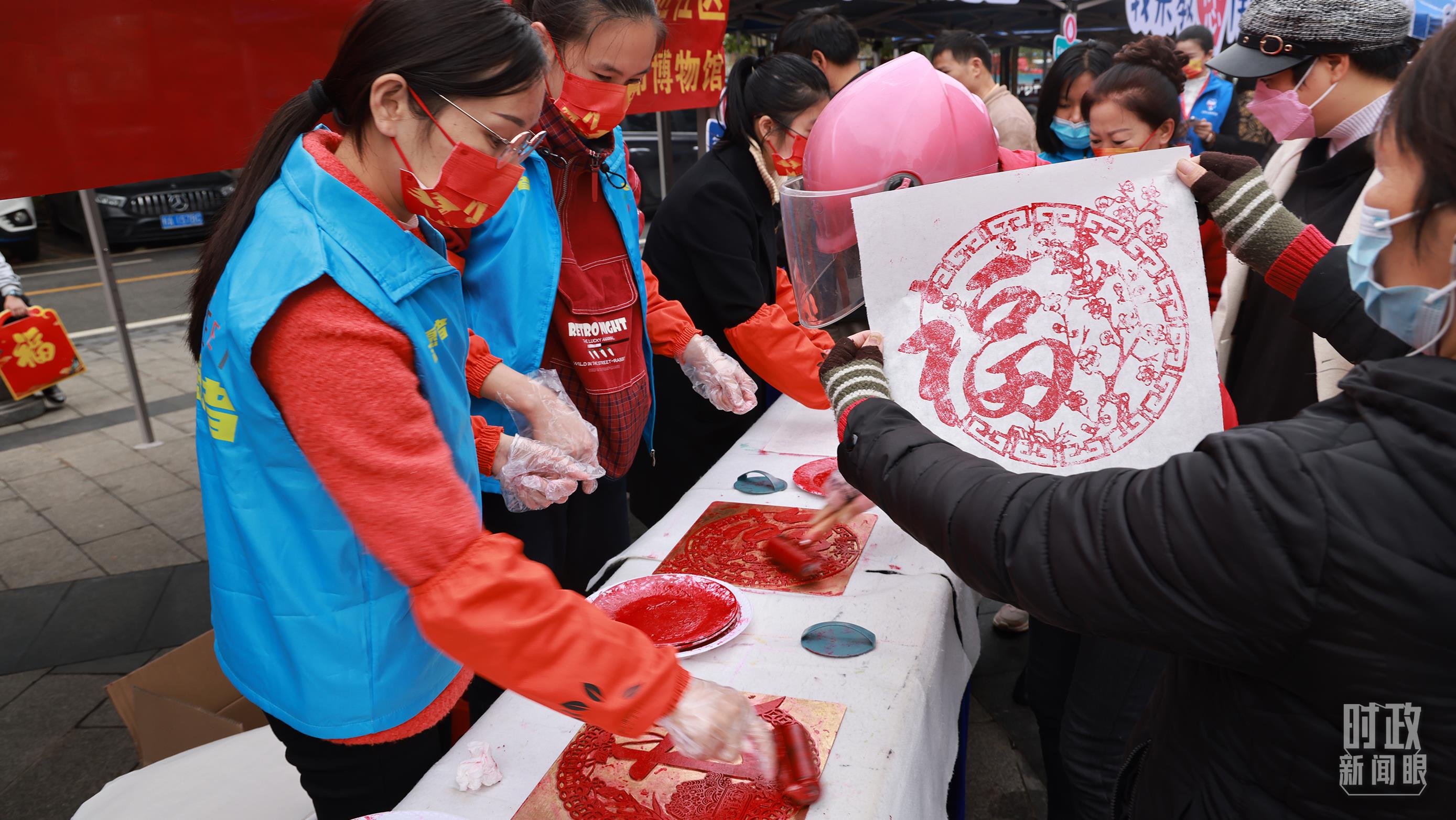 △蟠龍社區(qū)居民在社區(qū)活動上刻板畫。