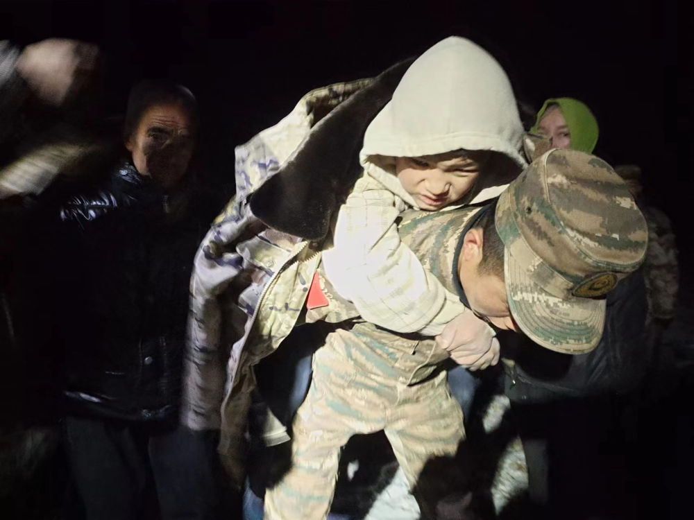 2023年12月19日,武警甘肅總隊(duì)臨夏支隊(duì)官兵在甘肅省臨夏回族自治州積石山縣劉集鄉(xiāng)陽屲村展開救援。新華社發(fā)(侯崇慧 攝)